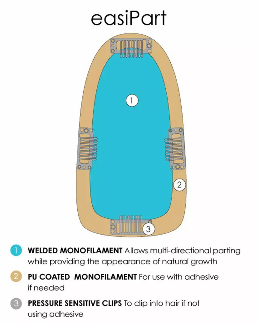 8~12 Inch EasiPart 8 Inch | Monofilament Remy Human Hair Toppers By Jon Renau