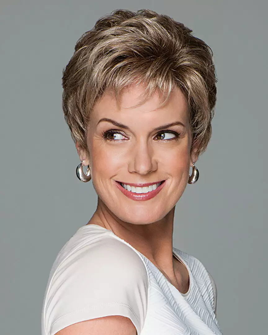 A Hand-Tied top for light, cool comfort and a sheer scalloped hairline for off the face styling enhance this classic cut of softly waved layers that beautifully blend to a neck-hugging, tapered nape.