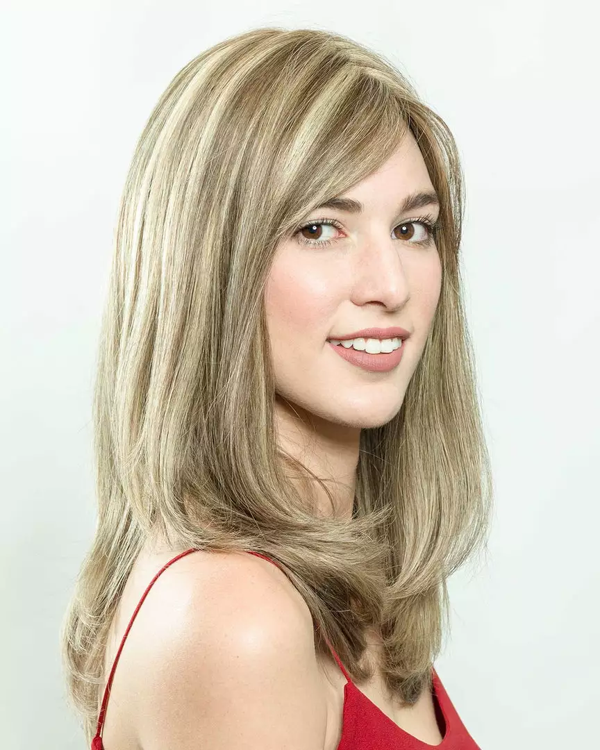 Layered around face with shoulder length and scalloped front to create a natural look.