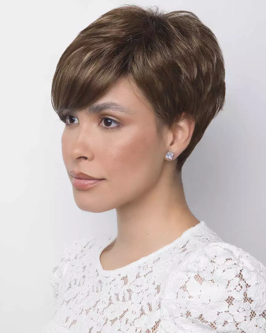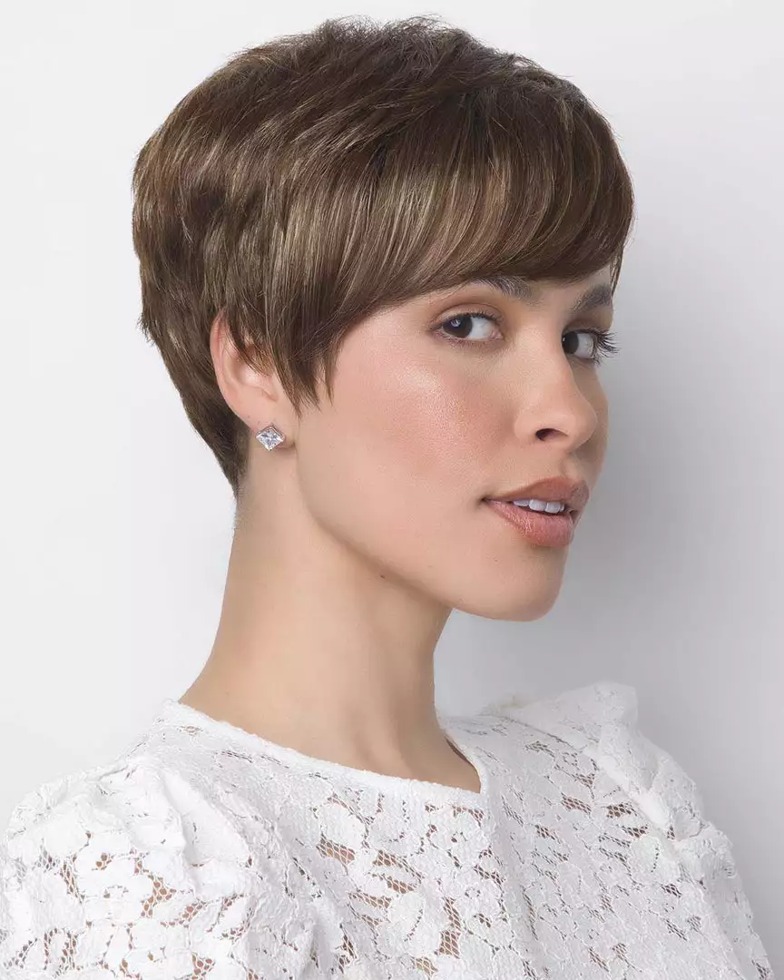 Amara from our Alexander Couture Collection is a short-length synthetic wig. This straight ready-to-wear wig is a pixie cut with a stylish fringe on the side. This style has texture and a body that will give you an effortless look. Amara is machine-made with adjustable tabs in the back nape area to allow a more comfortable fit. The result is a comfortable fit with a natural look that is both fashionable and easy to wear.