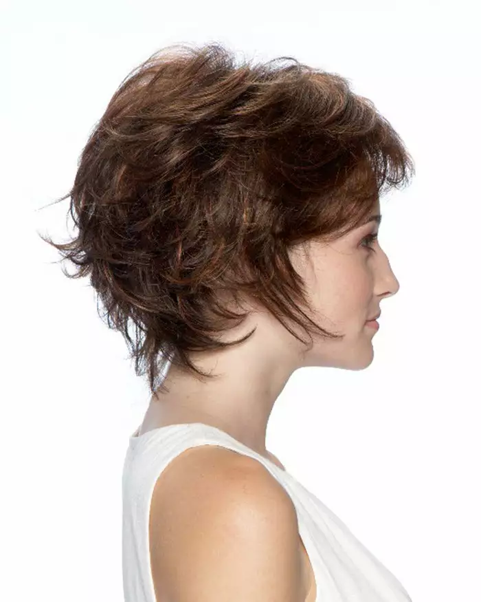 This flattering shaggy bob compliments the face with a cavalcade of wispy disconnections and volume. A razor-finished silhouette gives additional movement to this short textured style. An open capless wig construction of thin spaced wefts make up the inside of cap, providing airy lightweight ventilation. A style worn casual or dressed up, it provides a gorgeous and easy way to update your look without the fuss.