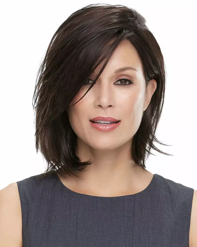 The bob evolves! Length and layers refresh this timeless style. The SmartLace front, mono-top, and 100-percent hand tied cap provide a natural appearance and fit.