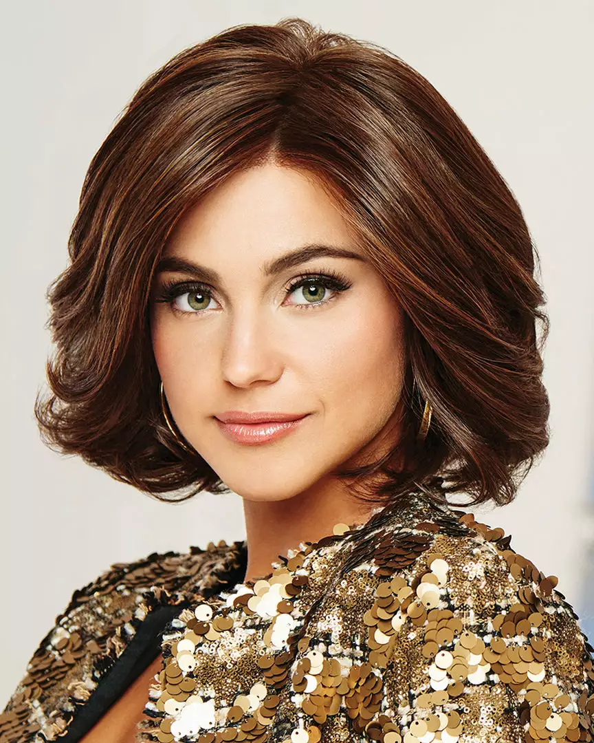 Including dramatic side swept bangs and long, subtle layering throughout, this stunning mid-length cut combines the natural locking hairline of a Sheer Indulgence lace front, monofilament part for off-the -face styling and parting flexibility, with the added styling versatility of our heat friendly Tru2Life synthetic hair.