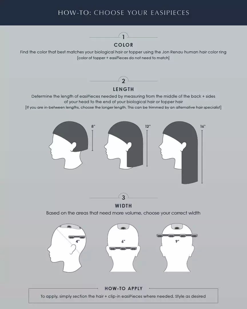 Designed with an undetectable low profile, clip-in EASIPIECES add subtle, balancing volume that complements a lightweight topper for a full, natural look. Made with the highest quality Remy human hair on slim, slender polyurethane base designs.