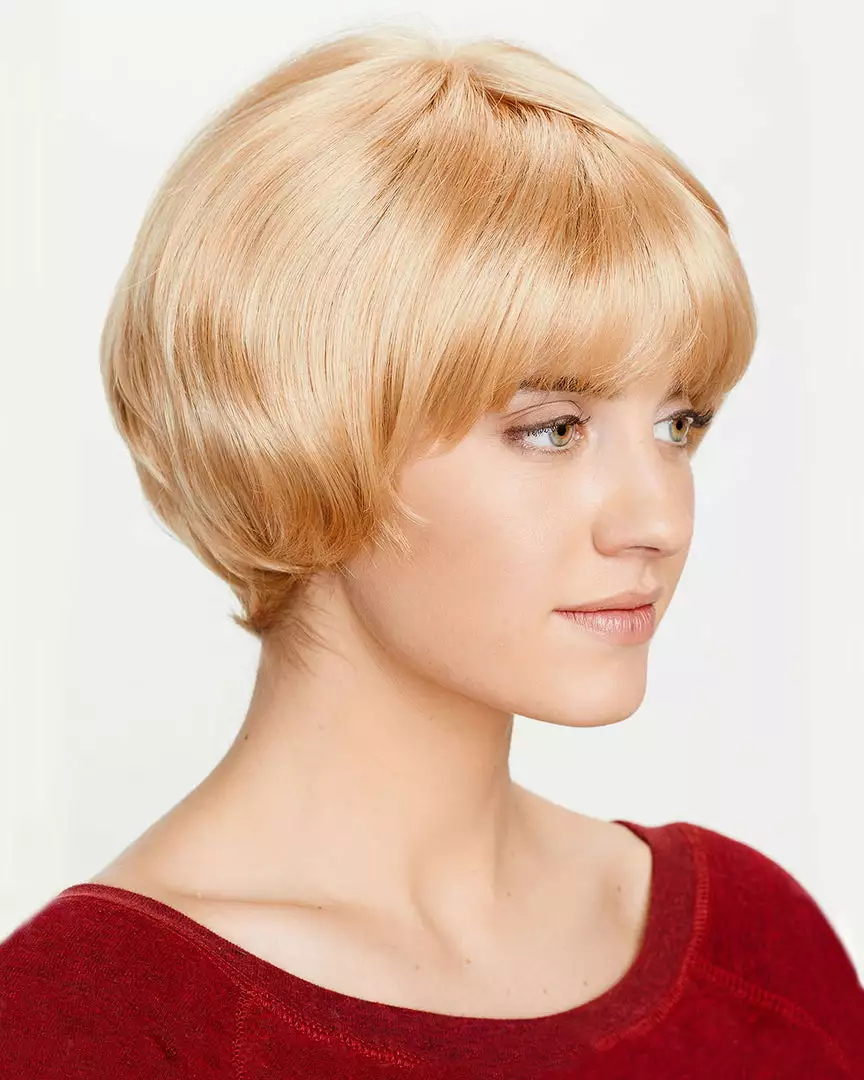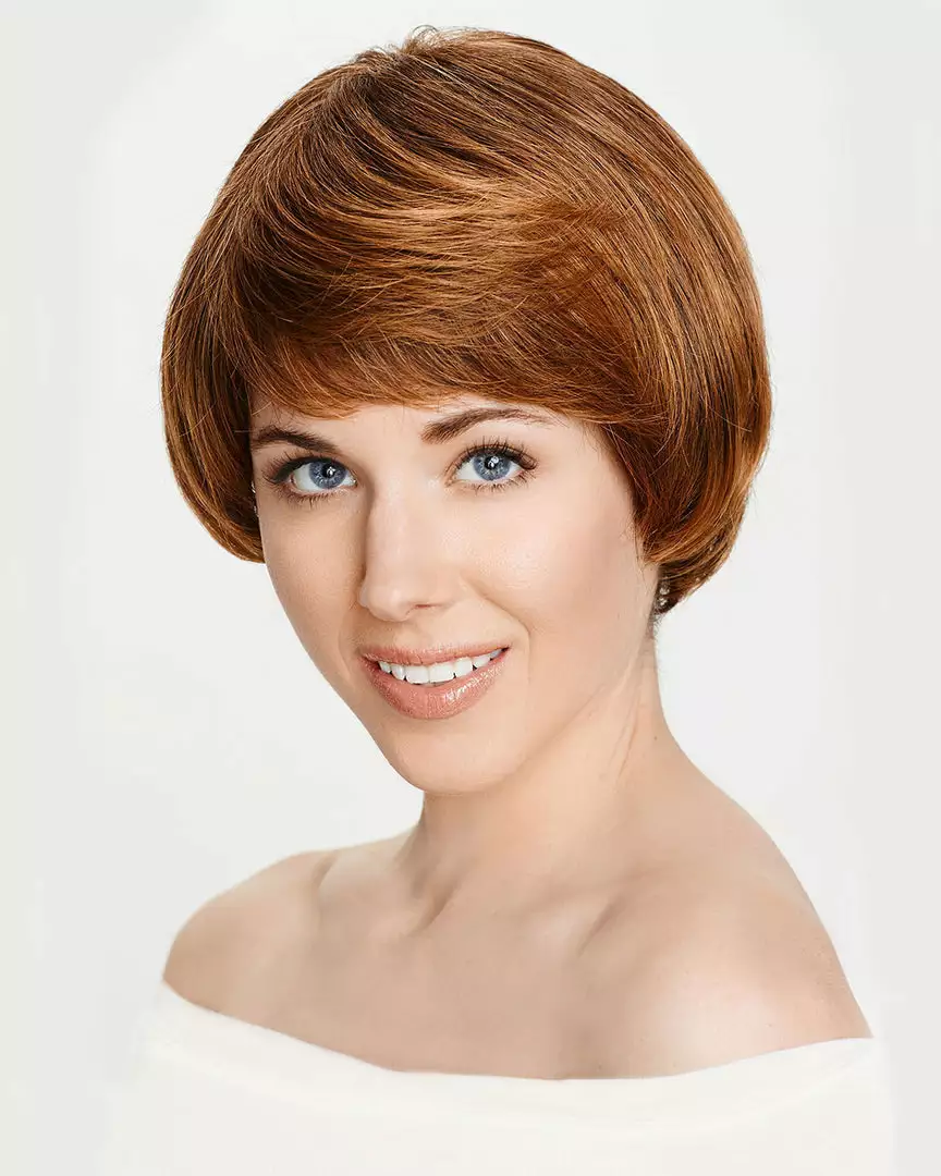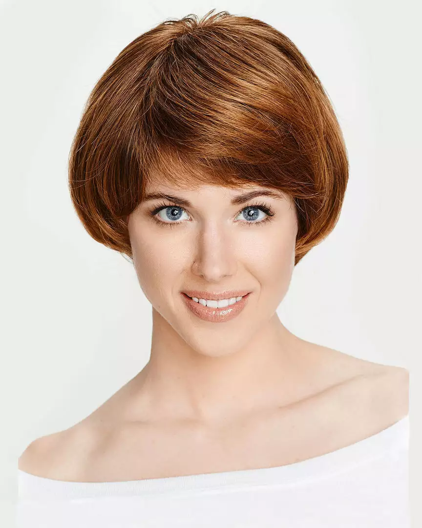Elgin is a gorgeous mushroom bob with a shaggy nape and mono cap construction. Offering unparalleled styling versatility and effortless look. Combined realism of a natural looking scalp and hair growth allow the greatest confidence in wear. A perfectly flattering face framing style with a lightweight design of open wefts along the inside of cap at the sides and nape.