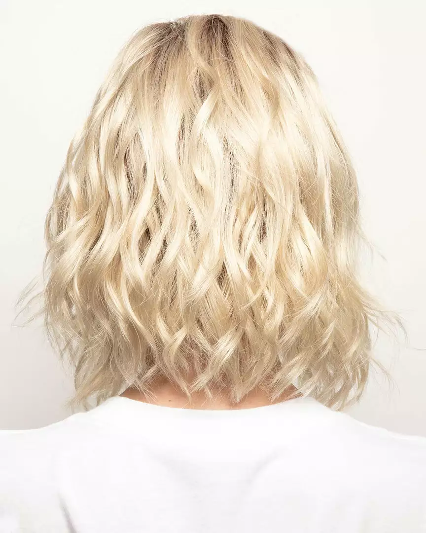 Salon finish beach wave curls fall shoulder length in this trendy bob with a new lace front mono-part cap.
