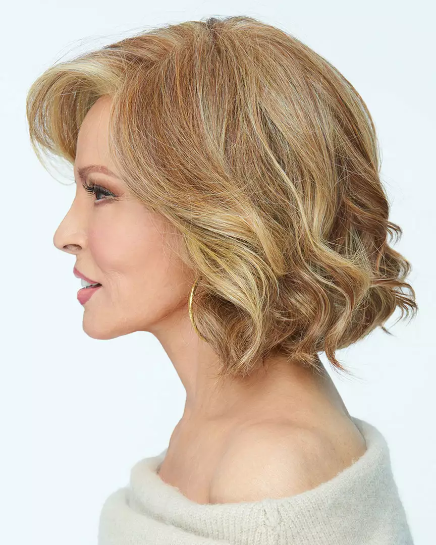 A chopped bob that’s loaded with wave and movement, this flattering style includes an eyelash bang and curled back waves for a thoroughly modern vibe. Slightly tapered ends and natural volume bring this classic silhouette up to date.
