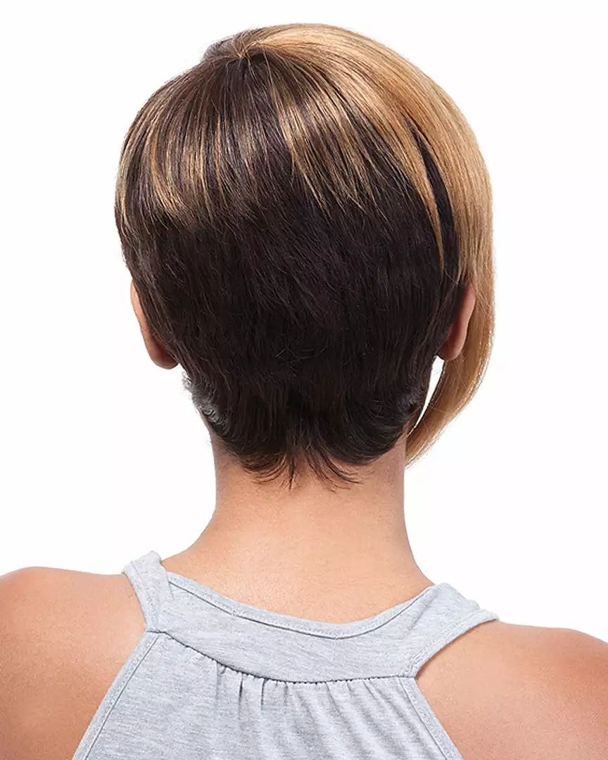 These short cut style wigs are easily handled, and made with top quality human hair. If youare into the side swept bang with a shorter side on the other than youall definitely fall in love with this look. Cynthia 100% human hair wig! So youare free to style with some low temperature heat products! Keep it straight and sexy or try to scrunch up some waves to add a little bit of style of your own to it!