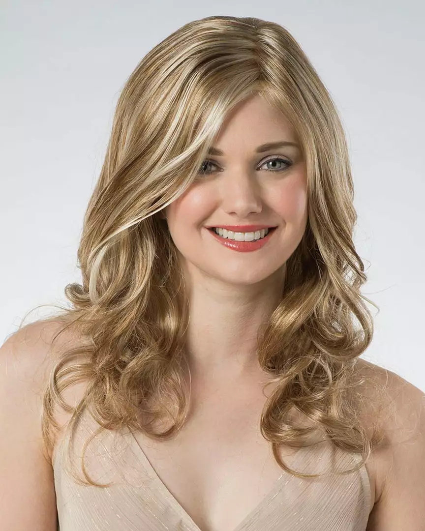 Lux length with sultry and effortless bouncy ends. This is a glamorous Lace Front and Mono Crown Part with tumbling bangs. A fresh and vibrant new Long with high volume and high impact.
