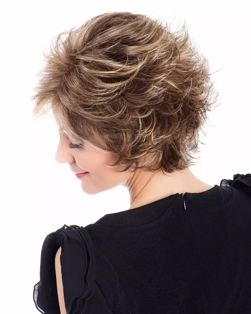 Lacey is a lovely grown-out pixie style with vertical layers that can be worn wispy or brushed up.