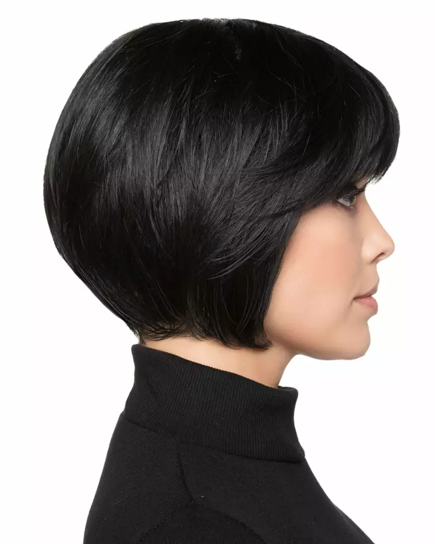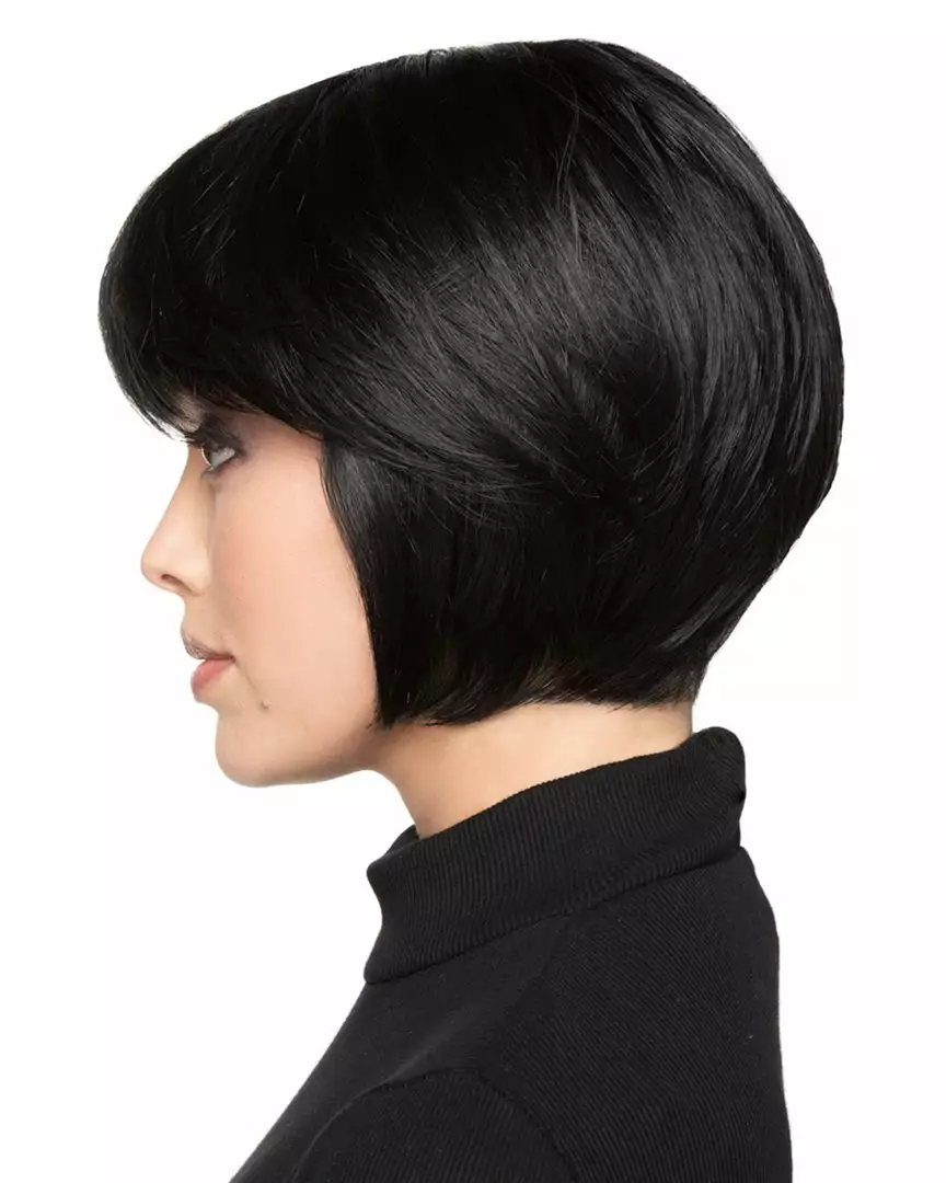 A geometric blunt cut with perfectly placed bangs. A bob back that tapers at the nape and our custom fitting Sheer Comfort cap with a sculpted lace front and a soft mesh monofilament top for an undetectable hairline that delivers all-day comfort.
