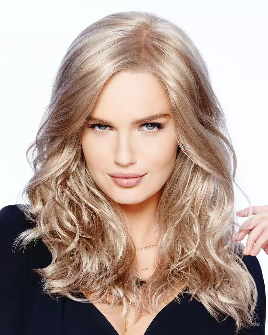 One of our longest layered shapes, this silhouette is loaded with tumbled, cascading waves that offer just the right amount of fullness to deliver a natural look and appeal. This style can be “scrunched” up for more texture, or brushed out to create a glamorous and soft wave. The Sheer Indulgence™ lace front monofilament top allows for natural looking off-the-face styling and parting options.