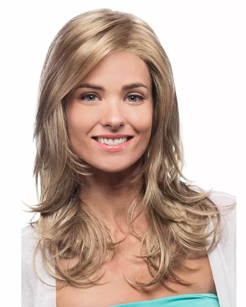Front Lace Line/Below the shoulder Layered Cut with Natural Flair & Side Swept Bangs