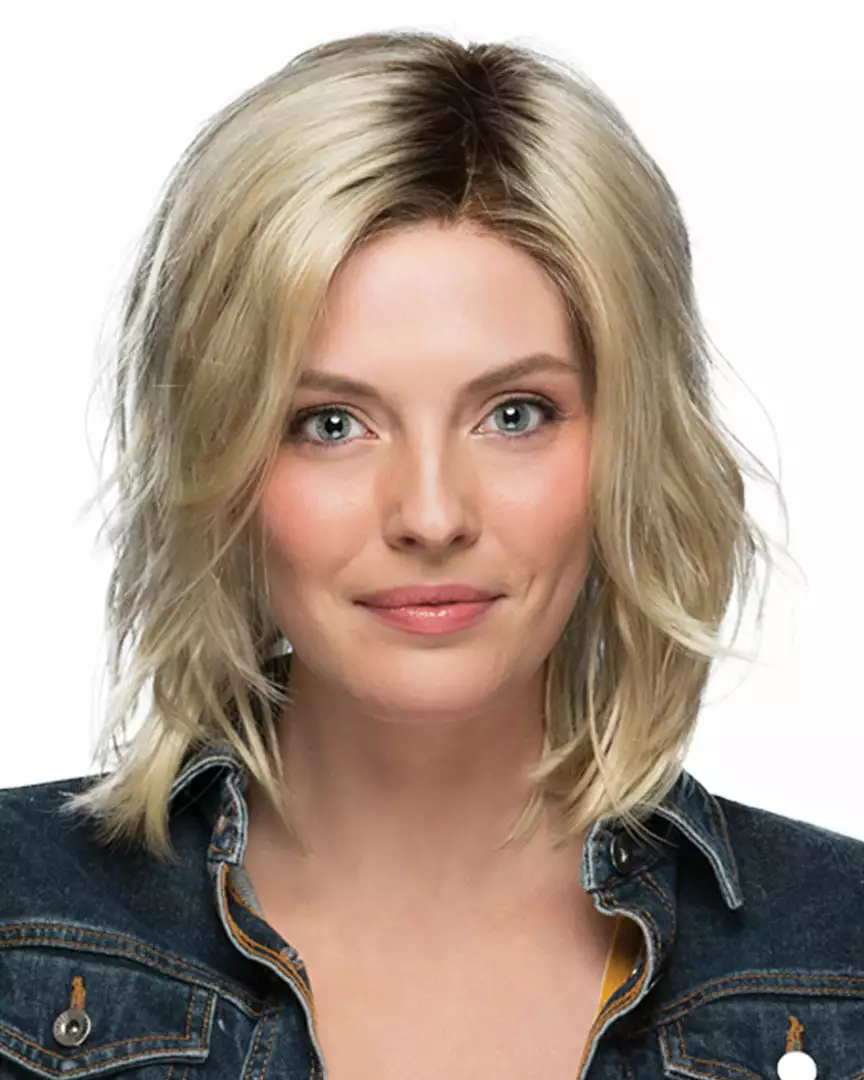Mellow’s messy waves instantly add sexy movement, showing off the different textured layers of this carefree shaggy style. Long side bangs blend effortlessly with the texturized, modern layers for an effortlessly casual look.