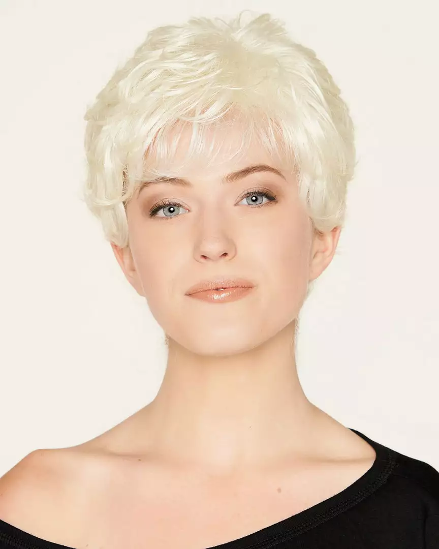 Short boy cut hair with a slight curl. Miracle wig is the perfect mix of style and convenience. The allover layers help create a natural flow, while the tapered neck delivers the coverage needed.