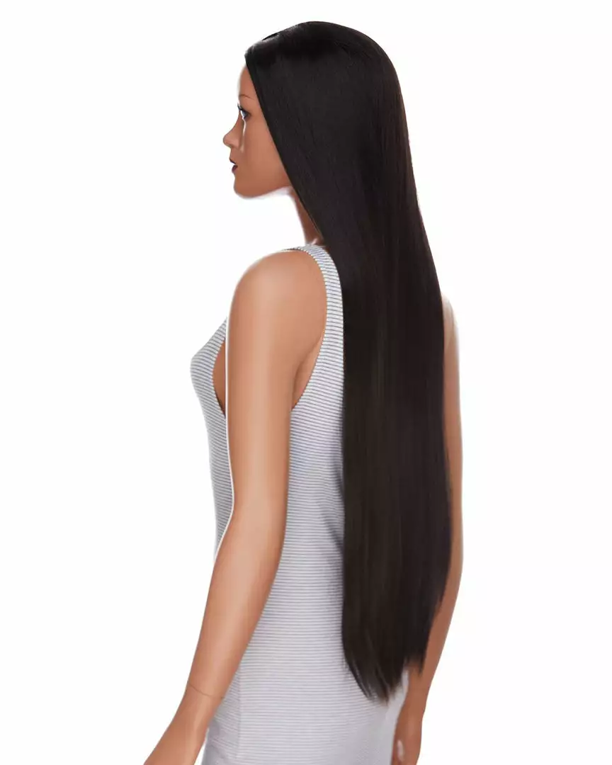Super long swishy layers of silky straight hair flow down for nearly a whole meter, giving you a stunning new look in a snap!! It has a full skin top so you can brush in a fringe or sweep it off to the side with a minimum of fuss.