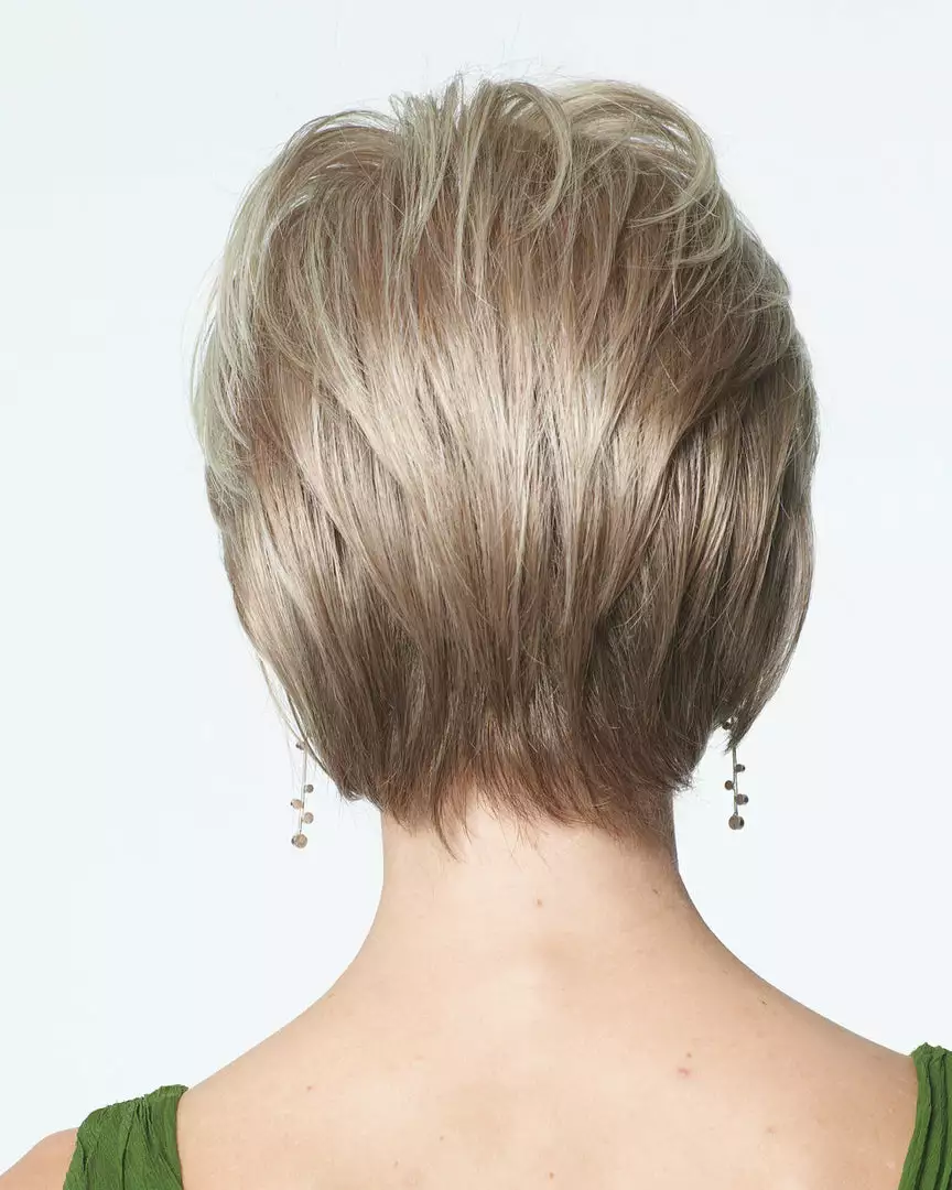 With a hand-knotted top and lace front for a life-like hairline and varied styling options, this short, face framing shag reflects the straight, smooth cuts featured on the latest fashion runways.