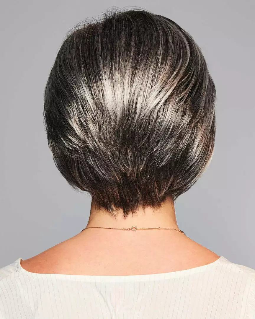 From its chin-length front layers to a tapered nape, this chic bob has a piece-y texture that can be styled towards the face for a playful look or brushed away for a sophisticated effect.