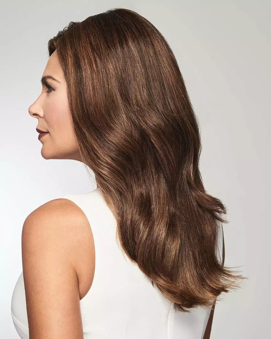 Including a Sheer Indulgence lace front and monofilament top for added styling options plus 4 strategically placed, pressure-sensitive clips for a secure, comfortable fit, this exquisite hair addition is ideal for adding top-of-head volume.