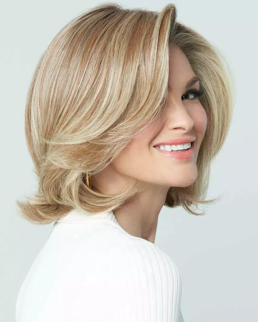 A tale of carefree elegance. Completely hand-tied with a monofilament top for unstructured, uncontrived beauty. Turn the page on boring with a sweeping eyelash bang and the flair of textured ends that sport a subtle flip. Natural looking layering delivers a body without bulk.