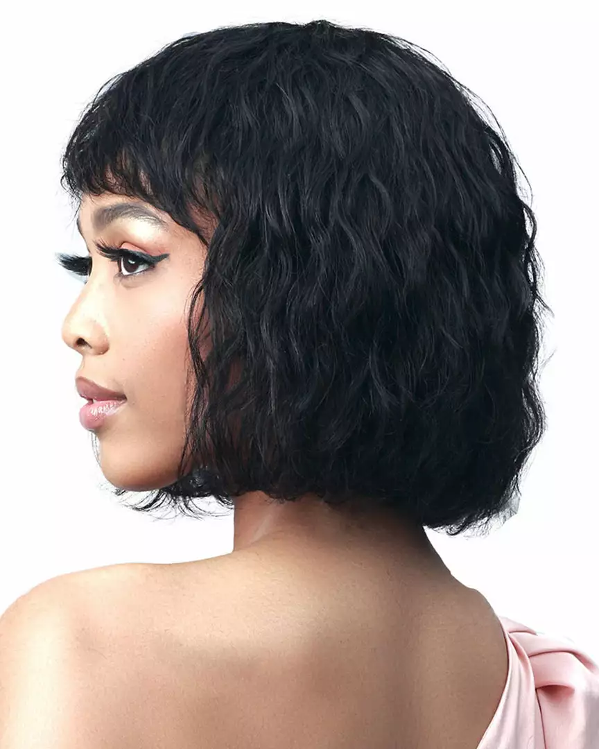 A Soft Bob with Bangs on an ultra-hygienic cap!
