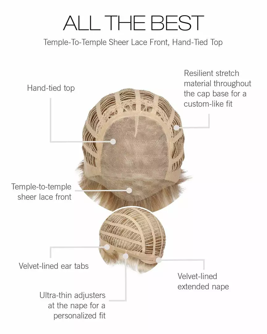 True to its name, All The Best will have you feeling your very best every time you wear it. This cut is chic and transitional, easy to dress up thanks in part to its hand-tied top. The delicate net lining on this lace front wig ensures it will feel comfortable against your scalp with an undetectable natural-looking hairline. It’s easy to style to your personal preferences, fluff up with a comb or simply shake out and wear!