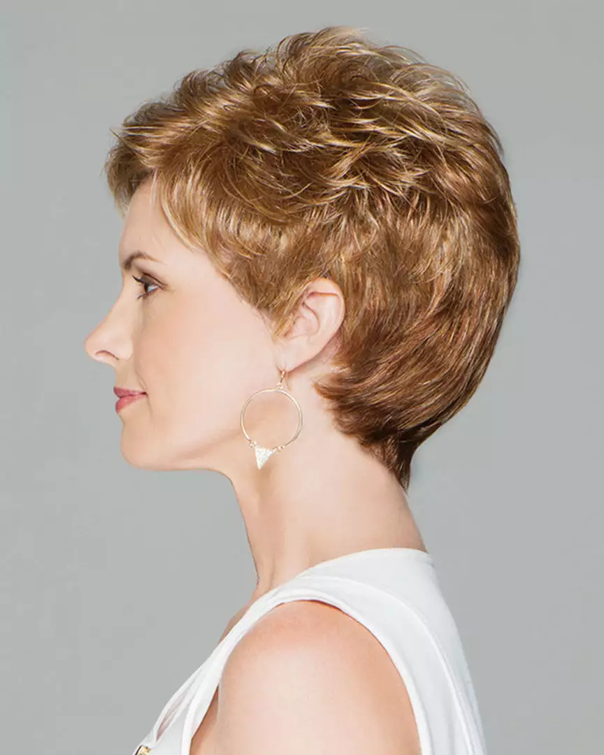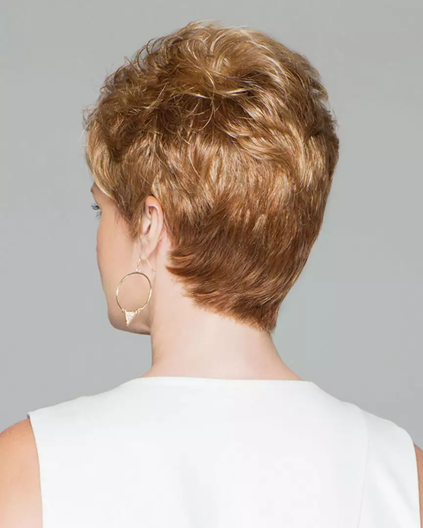 All over short layers blend into an expertly tapered, neck-hugging nape.