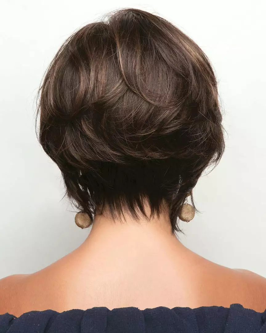 Dolce is a chin-length, layered, and voluminous synthetic wig. The softly graduated layers are designed to a modern style. This cut is full of layers and loose waves that create volume and movement.