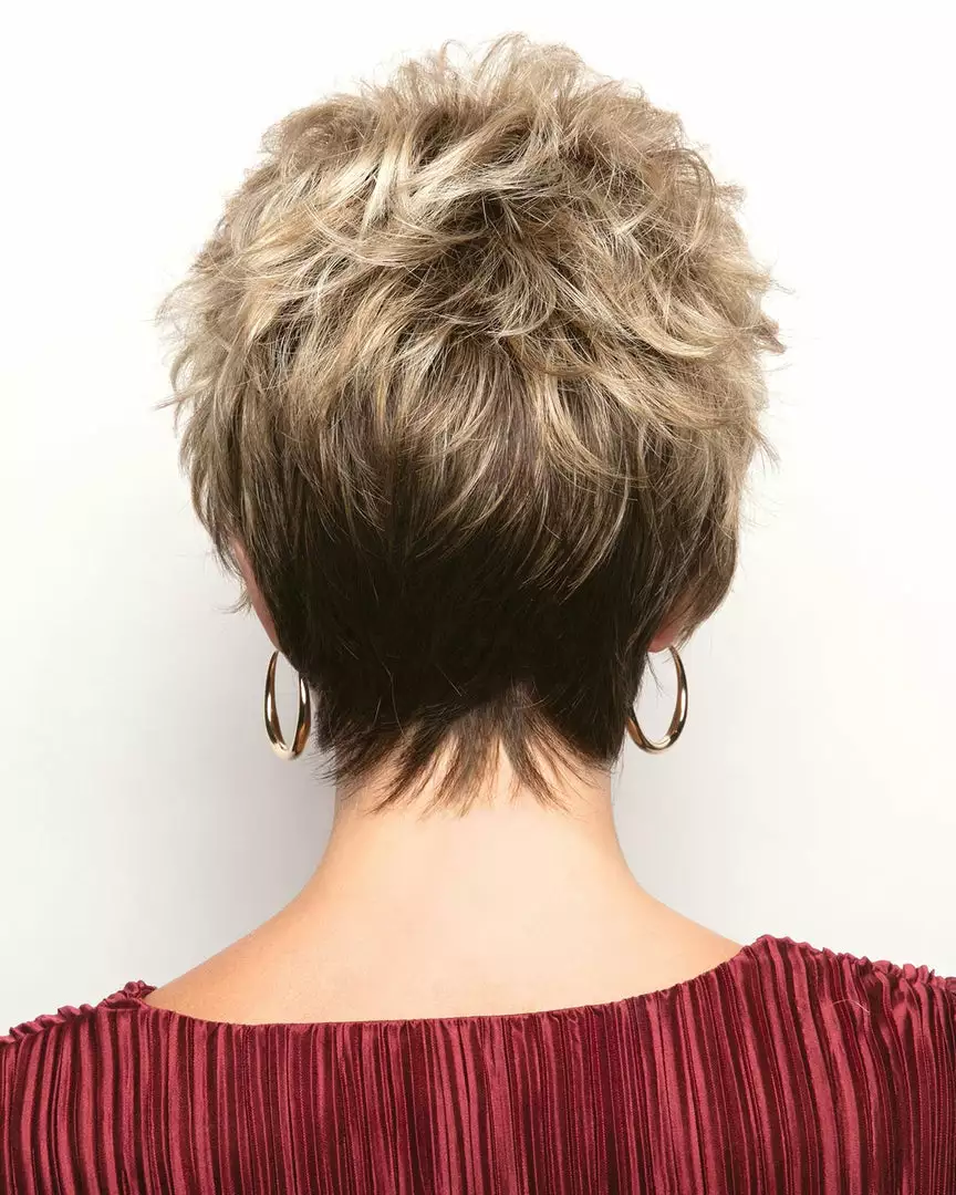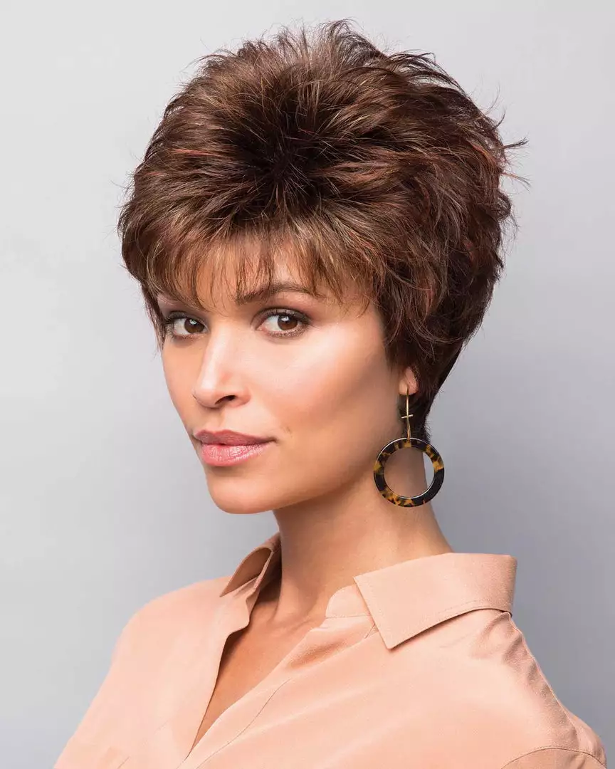 Overall point-cut layers combine to make a bold statement in this short “edgy” cut.