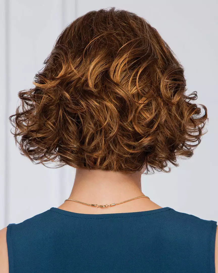 All over, softly waved layers define this collar length wavy bob. The lace front monofilament part allows for off-the-face styling options