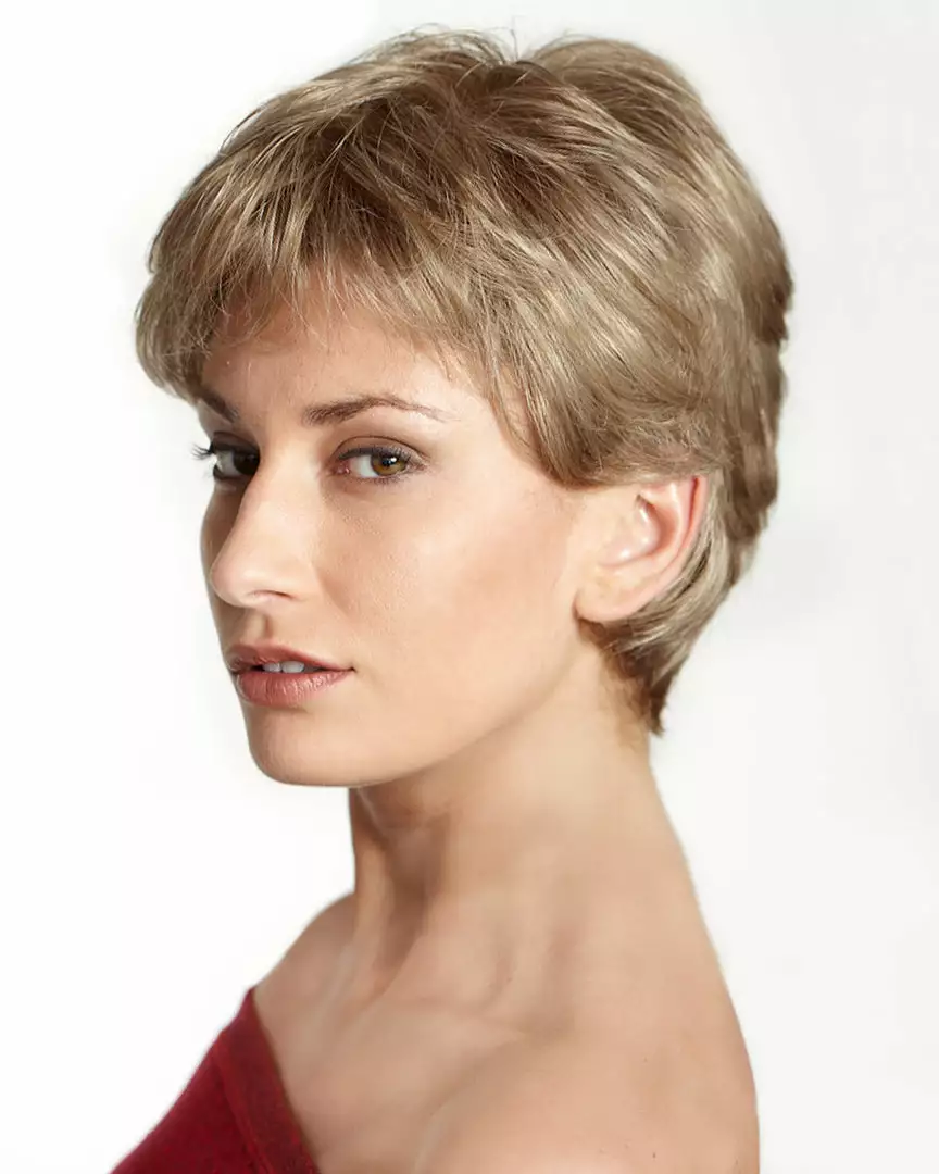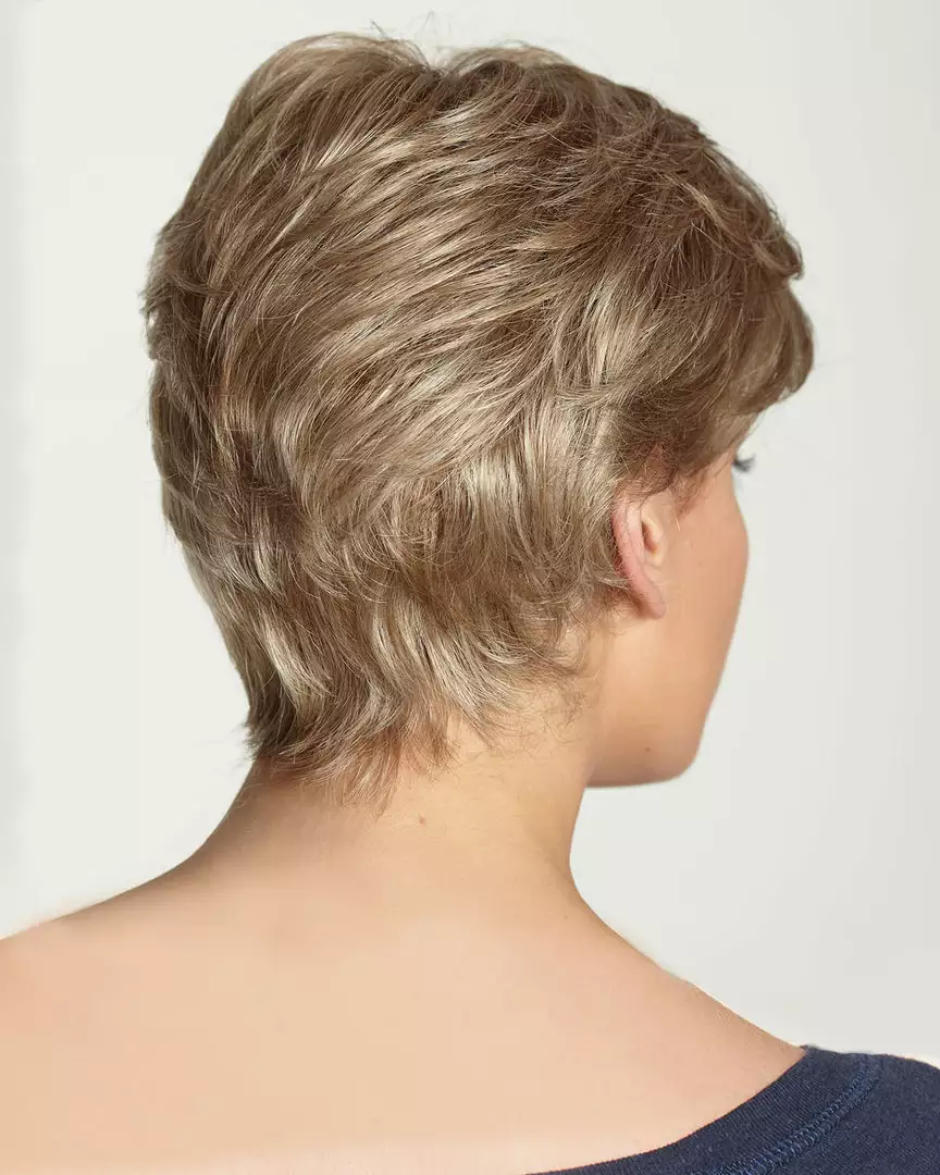 Madison is a short soft waves boy cut with added volume and tapered layers. Realism and comfort define this look. An effortless style with the confidence of hand-tied hair fiber in a smooth mono base cap allow the appearance of a natural scalp with hair growth. A confident yet classic silhouette designed for lightweight airy wear. Finger style and go. A terrific choice for women in need of a medical wig.