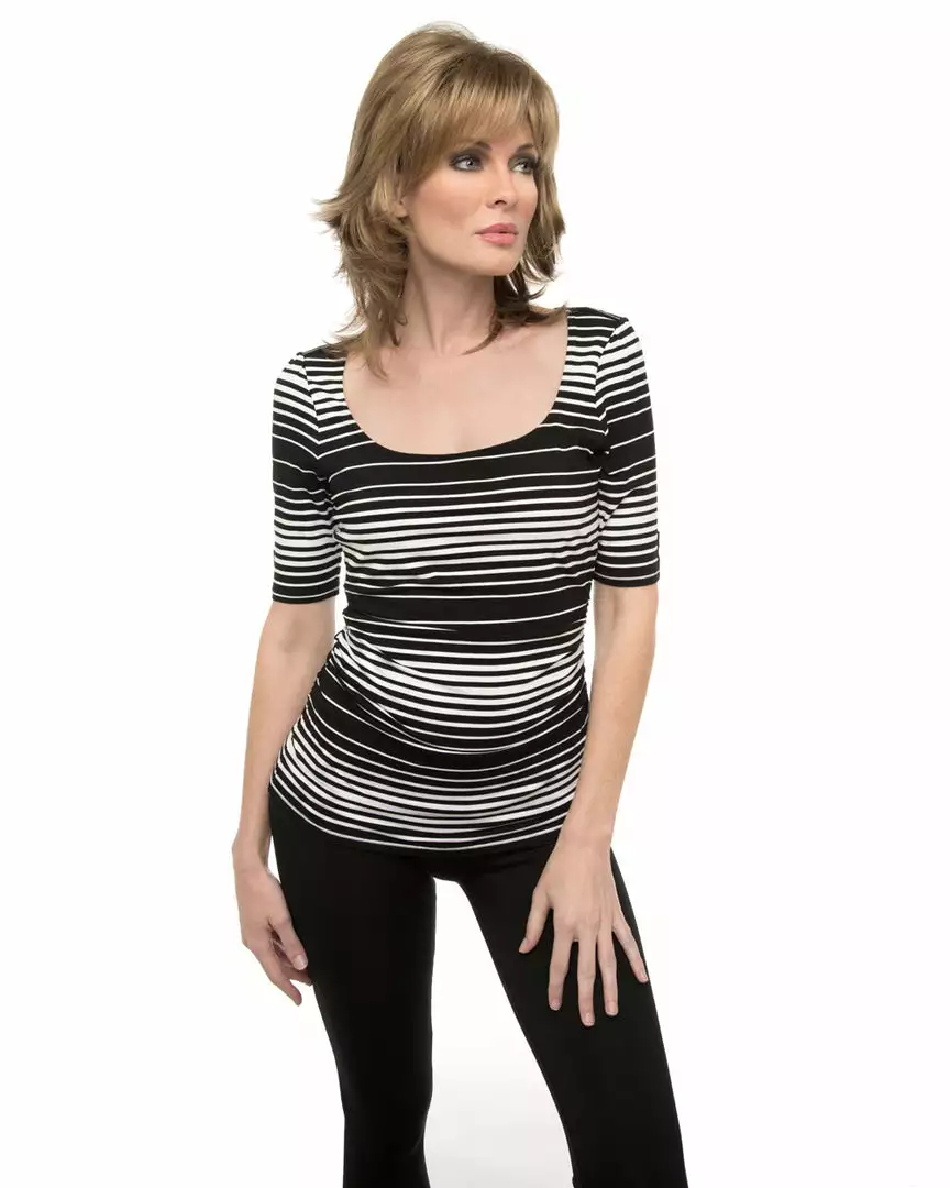 Mila by Envy is a lovely, shoulder-length shag with face-framing pieces that compliment any age and face shape. Dramatic layering gives this look lots of movement and volume, while the Open Top construction keeps things lightweight and comfortable.