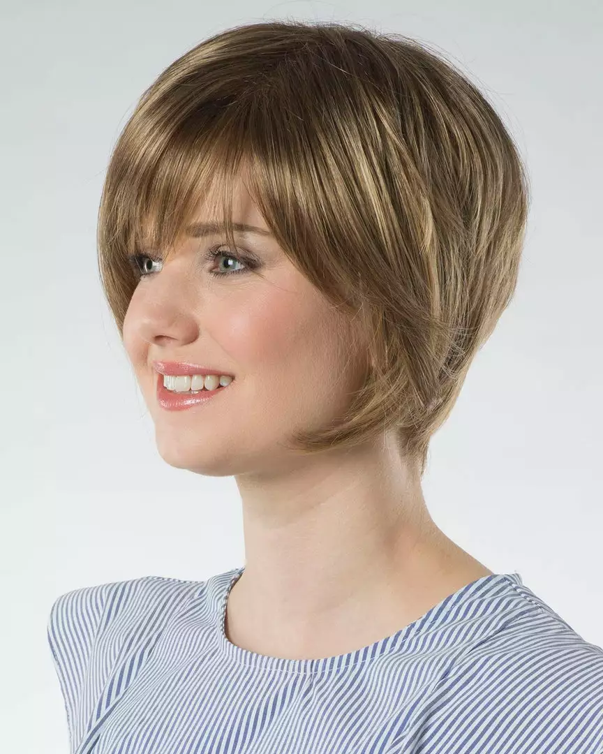 Our modern, modified bob with layered bangs and a tapered nape. This effortless style has elongated sides that sweep and shape your cheekbones. This will be your go-to shake and go style.
